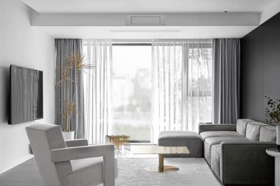 滿足臥室冷暖需求的同時,配合回型吊頂靠外墻安裝,吊頂預留600mm深度即可